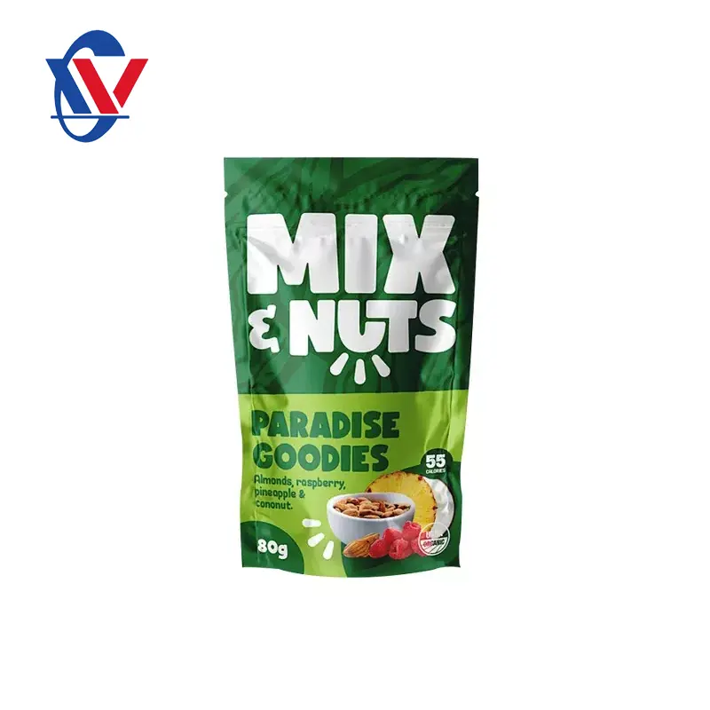 Beg pembungkusan makanan kacang kering adalah beg pembungkusan yang digunakan khusus untuk makanan seperti kacang. Titik reka bentuknya terutamanya termasuk bentuk, corak dan gabungan produk. Ia biasanya diperbuat daripada bahan -bahan telus untuk menunjukkan penampilan kacang -kacangan di dalam beg.
