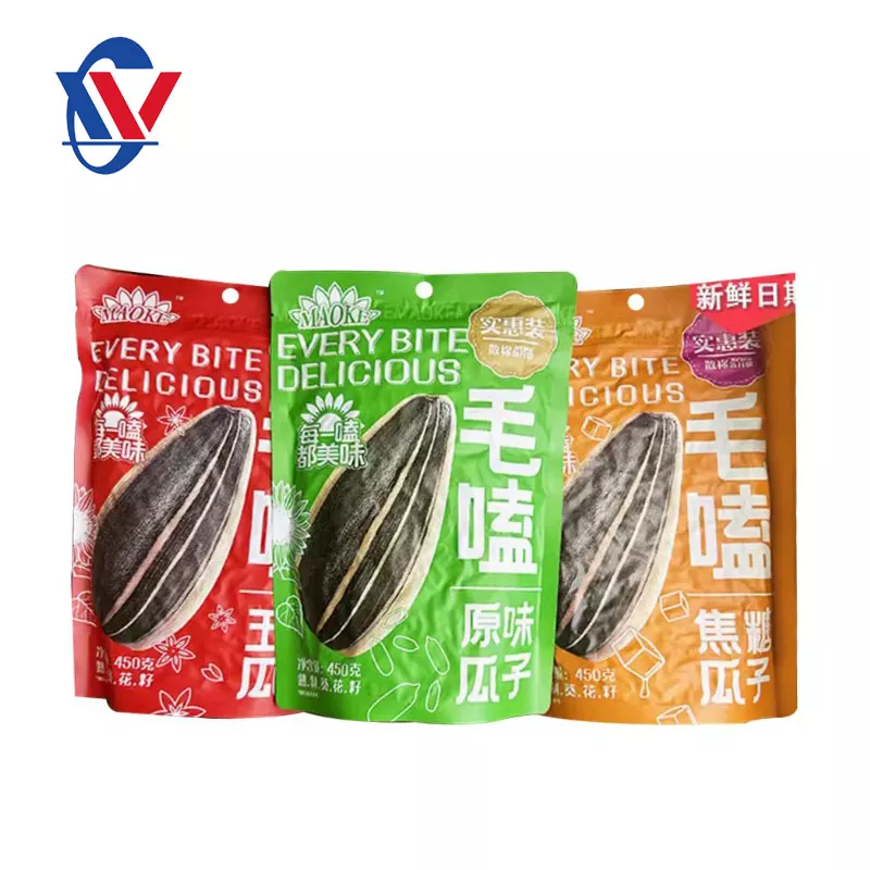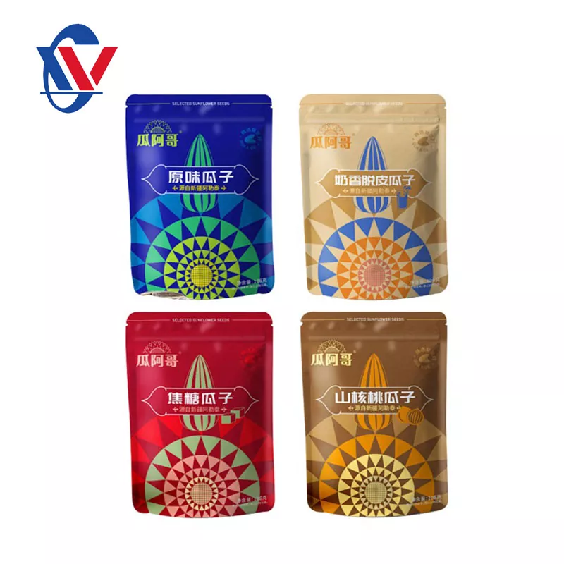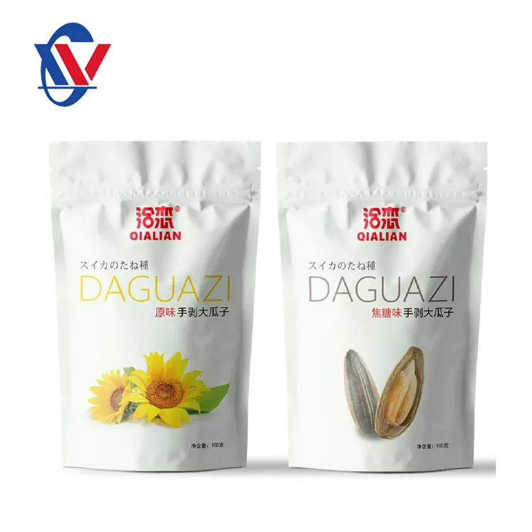 Bahan pembungkusan biasa termasuk kertas Kraft, foil aluminium (AL), polietilena berkepadatan rendah (LDPE), polipropilena berorientasikan biaxially (OPP), bahan komposit aluminium-plastik (VMPET/PE), dan sebagainya. Pemilihan bahan-bahan ini berdasarkan ciri-ciri mereka. Sebagai contoh, Kertas Kraft mempunyai kekakuan dan tekstur yang baik, yang sesuai untuk pembungkusan luar; Kerajang aluminium menyediakan sifat penghalang yang baik untuk mengelakkan benih melon daripada basah; polietilena berkepadatan rendah (LDPE) dan polipropilena berorientasikan biaxially (OPP) digunakan secara meluas kerana ketelusan dan sifat pengedapnya.