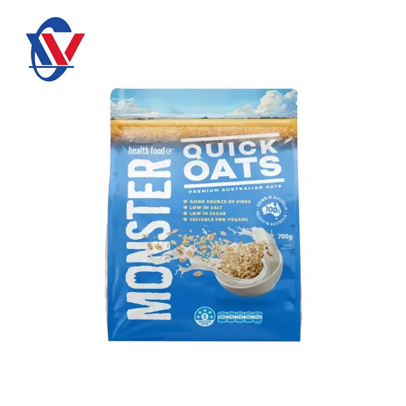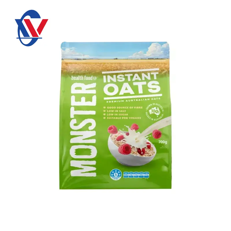 Beg pembungkusan makanan oatmeal kami diperbuat daripada penyerap oksigen, filem penghalang yang tinggi, percetakan gravure cermin, dicetak dengan lapisan mesra alam untuk membuat penyelesaian pembungkusan visual yang memaparkan dengan indah di rak kedai. Beg pembungkusan makanan oatmeal Bingye yang diperbuat daripada penyerap oksigen filem yang boleh dikitar semula, fleksibel dan tahan lama akan menghalang unsur-unsur yang berbahaya dan menyimpan produk yang lebih segar lagi.