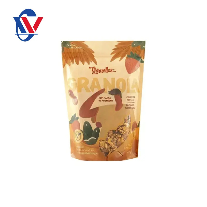 Kelebihan: Pencetakan tiga dimensi, pencetakan diri yang menyokong, rintangan tusukan, prestasi penghalang udara yang kuat, anti-pengoksidaan, kalis air, kelembapan-bukti, dan lain-lain. Ia mempunyai ciri-ciri penampilan yang indah, makan yang mudah, dan peningkatan jangka hayat produk. Ia amat sesuai untuk pembungkusan vakum bijirin, tepung, makanan ringan dan produk lain.