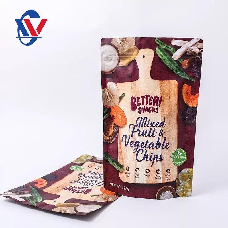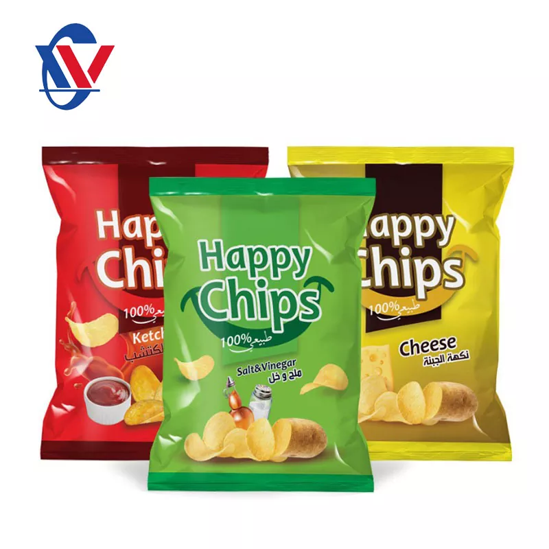 Beg pembungkusan snek kentang biasanya menggunakan bahan komposit berbilang lapisan. Lapisan paling luar adalah lapisan bercetak untuk memaparkan maklumat jenama dan produk; Lapisan tengah bertanggungjawab untuk menyekat udara dan kelembapan untuk memastikan bahawa cip kentang tetap rangup untuk masa yang lama; Lapisan dalaman bersentuhan langsung dengan makanan dan mesti memenuhi piawaian keselamatan makanan. Di samping itu, beberapa beg pembungkusan mewah juga menggunakan bahan-bahan mesra alam, seperti bahan PP yang boleh dikitar semula dan bahan PE yang tidak berasal dan tidak berbau, dan lapisan dalaman menggunakan kapas mesra alam untuk menyerap minyak dan melindungi makanan.