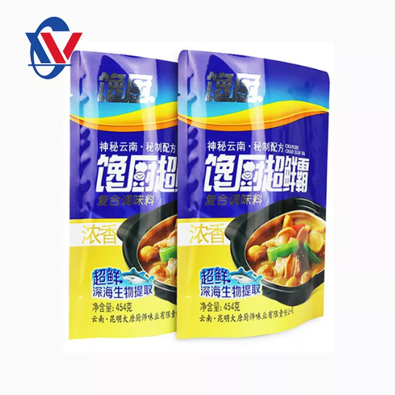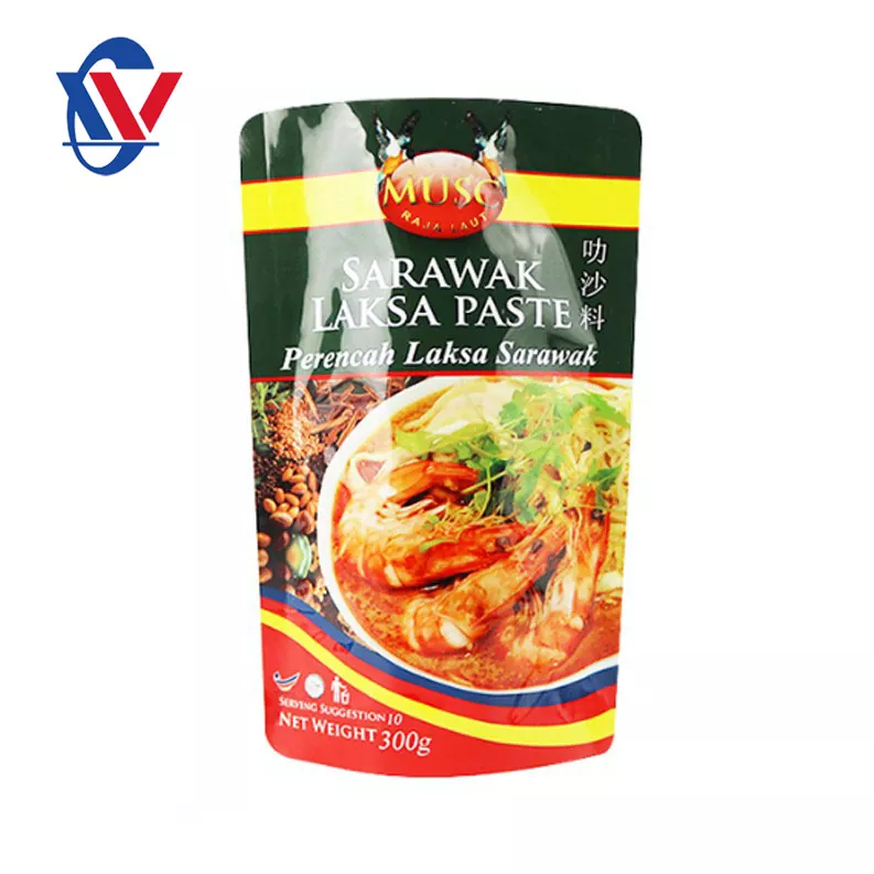 Zipper Bag : Beg zip adalah beg pembungkusan dengan meterai zip yang boleh dibuka dengan mudah dan ditutup. Gaya beg pembungkusan ini sesuai untuk sos yang perlu digunakan beberapa kali dan boleh menyimpan sos segar. Gaya beg pembungkusan ini sering digunakan untuk membungkus sos cecair, seperti sos, minyak perasa, dan sebagainya. Pemilihan bahan -bahan Pemilihan bahan beg pembungkusan sos adalah penting untuk mengekalkan kualiti, rasa dan jangka hayat sos. Bahan komposit plastik secara beransur -ansur menjadi pilihan arus perdana untuk beg pembungkusan sos kerana sifat unik mereka. Bahan -bahan komposit plastik mempunyai sifat penghalang gas yang baik, dengan berkesan dapat menghalang oksigen dan wap air, mengurangkan hubungan antara sos dan udara, dan dengan itu mengekalkan kesegaran dan rasa.